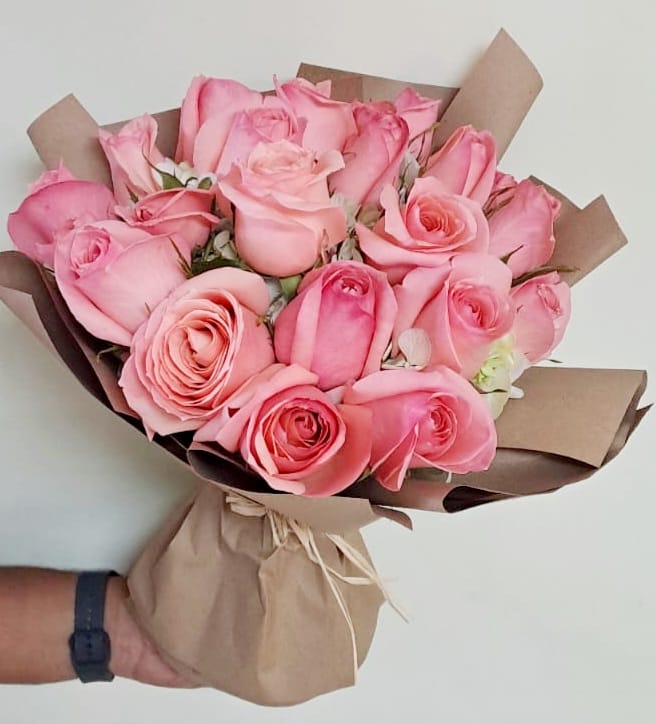 Ramo con 1 docena de rosas rosadas, delicadas y bellas.